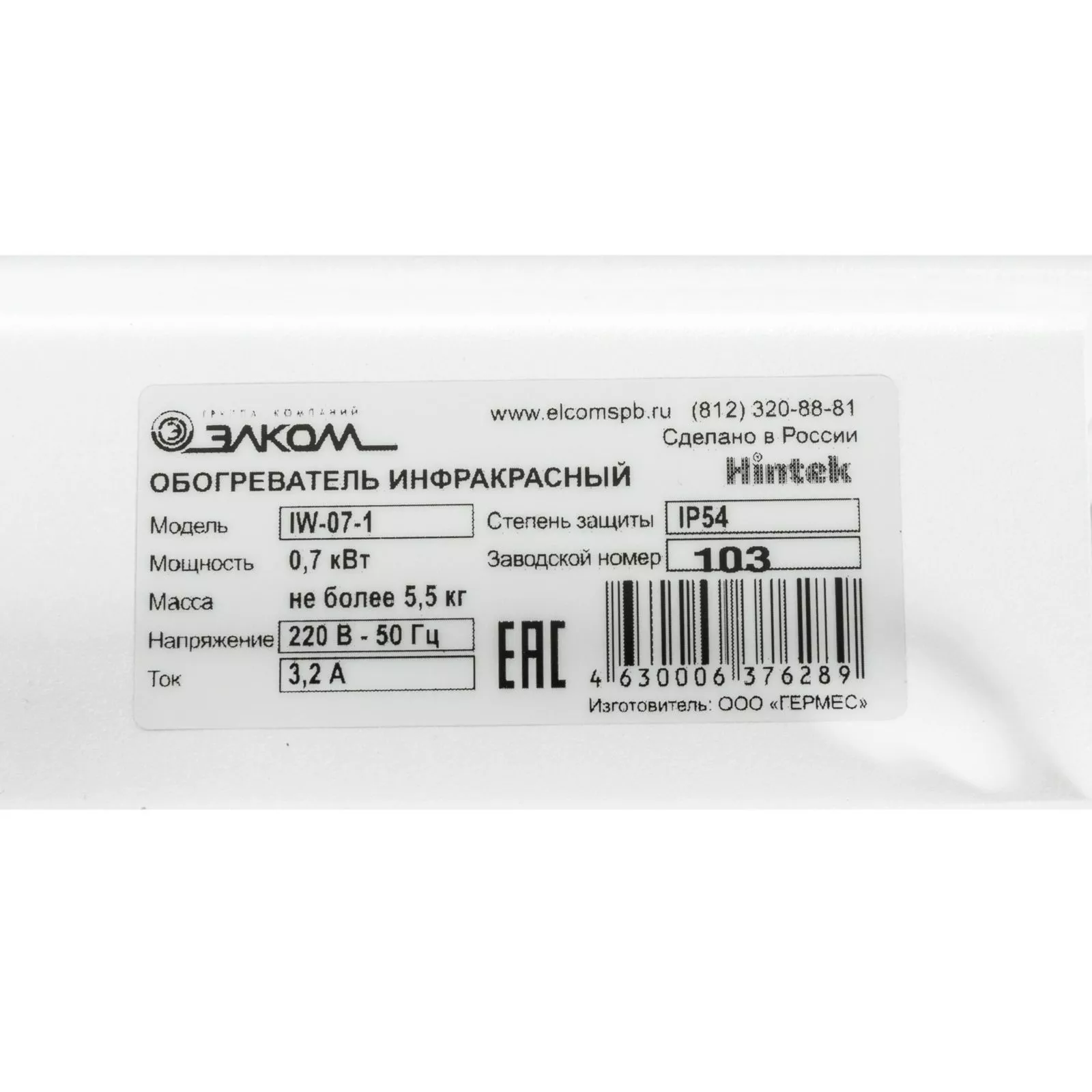 Описание товара: Инфракрасный обогреватель Hintek IW-07-1