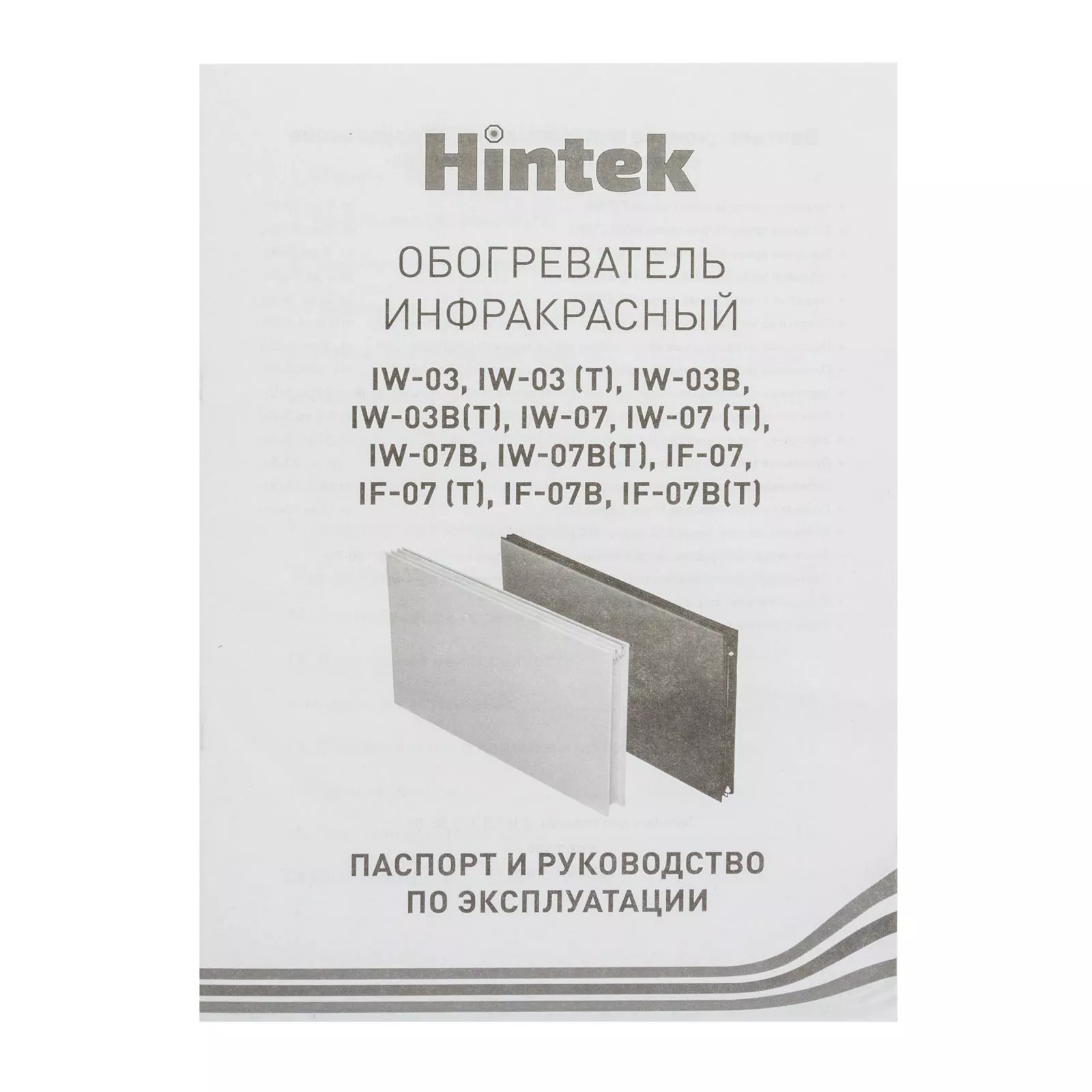 Hintek IW-07-1 – это инфракрасный обогреватель, разработанный для создания комфортного теплового режима в локальных зонах. Его принцип работы основан на прямом тепловом излучении, которое эффективно нагревает объекты и людей, обеспечивая быстрый и целенаправленный обогрев.